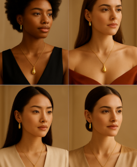 O Conjunto Hug com banho de ouro é ideal para quem busca um acessório delicado, moderno e elegante. Com design sofisticado e acabamento refinado, valoriza o visual com brilho na medida certa, sendo perfeito para o uso diário ou ocasiões especiais.